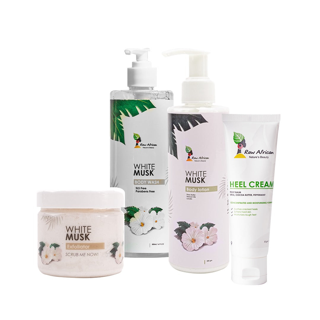 دلل نفسك بمجموعة العناية اليومية بالجسم، التي تحتوي على مكونات أساسية من المسك الأبيض لتنظيف البشرة وتقشيرها وترطيبها وإصلاحها. مثالية للحصول على بشرة ناعمة ومشرقة ومغذية.